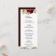 Cette carte simple à base de fleurs bordeaux est parfaite pour un mariage simple. Le design élégant et radieux bordo illustré comprend des fleurs élégantes, pêche, rouge foncé, rose, blanche, aquarelle, bordeaux et immaculées, soigneusement groupées en un bouquet étonnant sur un lit de verdure ravissant. Ce menu peut être utilisé pour une réception de mariage, un dîner de répétition, une douche nuptiale ou tout événement.