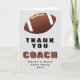 Carte d'entraîneur américaine moderne pour Merci de balle de football. La carte a un ballon de football à l'avant et à l'arrière. Grande carte pour remercier les entraîneurs sportifs, les formateurs d'équipe du lycée, les entraîneurs de maman ou papa, etc. Customisez tout texte sur la carte. Ajoutez le nom de l'entraîneur, le nom de l'équipe et l'année.