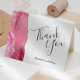 Cette élégante carte de remerciements mariage moderne dispose d'une bordure en aquarelle rose ornée d'une parties scintillant en faux or. Le texte personnalisable combine les mots "Merci" dans le script d'écriture manuscrite gris charbon et les noms de la mariée et du marié en caractères italiques sur un arrière - plan blanc.