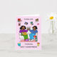 Illustration de deux femmes afro-américaines souriantes qui s'asseyent ensemble sur un canapé en train de boire des verres de vin. L'image est collée contre un arrière - plan rose pâle et accompagnée des mots "Merci d'être un si bon ami".