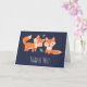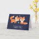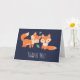 Carte de remerciements avec une illustration graphique de 2 renards oranges à l'air mignon et heureux. Message à l'intérieur que vous pouvez personnaliser. Arrière - plan bleu foncé.