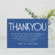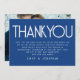 Texte minimaliste Mid Blue Mariage Merci Disponible numériquement et imprimé. Un design typographique simple et entièrement personnalisable pour remercier vos invités. Remplacez l'exemple de photo au dos par votre préféré. Vous pouvez également modifier le texte et les couleurs arrière - plans si vous le souhaitez via l'option customiser plus pour correspondre à votre thème de couleur mariage.