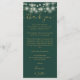 Un élégant vert émeraude et or mariage célébration merci carte de réception avec de jolies lampes à cordes. Personnalisé avec votre message de remerciement spécial dans la typographie stylisée. Un gardien spécial vous remercie à vos invités. Conçu par Thisisnotme©