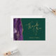 Cette élégante carte de remerciements mariage moderne dispose d'une bordure en aquarelle violette ornée d'une parties scintillant en faux or. Le texte personnalisable combine les mots "Merci" en écriture manuscrite couleur or et les noms de la mariée et du marié en caractères italiques sur un arrière - plan vert émeraude. Ajoutez votre propre message personnel à l'envers.