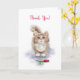 Très mignon chat assis devant la rose rouge et disant "merci".