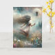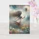 Une jeune fille aux cheveux flottants est représentée en train de courir à travers un champ tenant une grosse tête de semence de pissenlit dans le style d'art Monet pour le Merci. Tout le texte peut être modifié.