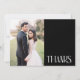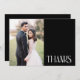 Merci à vos invités mariages pour leur présence à vos célébrations et cadeaux de mariage avec ces élégantes cartes de remerciement en noir et blanc mariage photo. Téléchargez votre photo de mariage préférée et ajoutez votre message de remerciement à l'arrière de la carte.