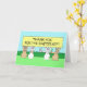 Une caricature de cinq lapins qui mangent des carottes dans un champ alors qu'ils tiennent une bannière couleur citron. La bannière contient "Merci pour le cadeau de Pâques".