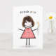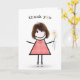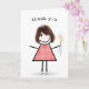 Jolie figurine en bâton avec cheveux, baskets, robe en vichy, collier de perle, et bouquet de marguerite pour vous remercier. La couleur arrière - plan blanche peut être changée. Tout le texte peut être modifié.