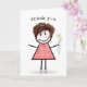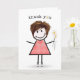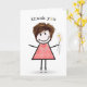 Jolie figurine en bâton avec cheveux, baskets, robe en vichy, collier de perle, et bouquet de marguerite pour vous remercier. La couleur arrière - plan blanche peut être changée. Tout le texte peut être modifié.