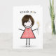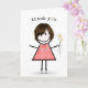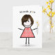 Jolie figurine en bâton avec cheveux, baskets, robe en vichy, collier de perle, et bouquet de marguerite pour vous remercier. La couleur arrière - plan blanche peut être changée. Tout le texte peut être modifié.