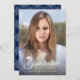 Cette carte de faire-part de graduation photo comporte un tableau de mortier et le mot "Graduate" en script contre un dégradé foncé pour fournir le contraste. Le côté arrière a un motif géométrique blanc contre une couleur arrière - plan arrière modifiable. Pour le modifier, cliquez sur personnaliser, sélectionnez le côté arrière de la carte, sélectionnez arrière - plan et modifiez la couleur. C'est une excellente façon de faire correspondre votre faire-part aux couleurs de votre école. Personnalisez-le en remplaçant le texte de l'espace réservé. Pour plus d'options comme changer la police, sa taille et l'espacement entre les lettres cliquez sur le bouton "Personnaliser". *Veuillez noter que le filigrane Zazzle qui apparaît dans l'aperçu du zoom n'apparaîtra PAS sur le produit imprimé final. © Bois de rose et agrumes