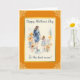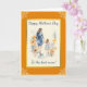 Cette carte présente une image aquarelle d'une mère et d'une fille se tenant la main entourées de fleurs. Les couleurs principales sont l'orange et le bleu. Tout le texte sur la carte est personnalisable avec le vôtre.