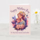 Cette carte de fête des mères comporte une belle illustration d'une mère et de son fils entourés de fleurs. Tout le texte sur la carte est personnalisable avec le vôtre.