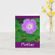 Photo d'une jolie fleur violette au milieu de la verdure et le mot "Mère" apparaît sur le devant de la carte. A l'intérieur : "Maintenant que je suis une mère, j'avoue volontiers que je ne vous ai pas accordé le crédit que vous méritez. Tu l'as fait paraître facile. Merci d'accepter mes nombreux remerciements tardifs ! "Amour et Bonne Fête des mères". Le texte est personnalisable.