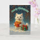 This delightful greeting card features a lovely Arctic fox holding a Christmas gift, surrounded by gentle snow falling. With the message “Merry Christmas” in elegant lettering, it perfectly captures the warmth and wonder of the holiday season.