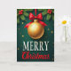 Below the ornament, the words "MERRY Christmas" are elegantly displayed. "MERRY" is in a crisp white font, while "Christmas" is written in a flowing red script. This contrast adds energy to the message and blends elegance with joy. The colors of gold, red, and green create a festive feel, enhanced by soft lighting that highlights each detail.