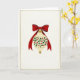 This lovely illustration captures the essence of a classic Christmas with a beautifully detailed holiday ornament as the focal point. The ornament itself is a creamy ivory color set against a soft off-white background, framed by a delicate golden border for a touch of elegance. At the top of the ornament, there is a vibrant red bow with flowing ribbons, creating a lovely contrast with the background. Detailed holly and berry motifs in deep green and crimson adorn the bauble, arranged in a symmetrical pattern. Golden accents on the cap and finial of the ornament add a touch of sparkle to the design. The overall feel is one of peaceful festivity and a hint of nostalgia, reminiscent of traditional holiday greetings. This card's simple yet refined charm makes it a beautiful homage to the Christmas spirit. 🎅🏼🎄🎁 Share this card to spread holiday cheer with its timeless beauty.