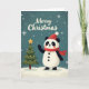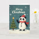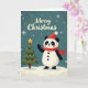 This lovely digital illustration captures the joy of winter holidays with a cute, artistic design. In the center is a lovable panda, drawn in classic black and white with soft pink cheeks, wearing a red Santa hat and scarf. The panda waves cheerfully, welcoming you to its snowy scene. On the left is a simple Christmas tree with golden ornaments and a shiny star on top, bringing traditional holiday spirit. The background is a calming teal color with hints of textured snowflakes falling gracefully. A layer of snow in the front adds depth to the festive setting. The phrase "Merry Christmas" is elegantly written across the top, adding a heartwarming touch to the image. This artwork captures the innocent happiness and cozy winter charm of the holidays, blending whites, greens, and reds with a touch of blue-green for a sophisticated yet inviting look. Share this delightful card to spread holiday cheer far and wide! 🎅🏼🎄🎁