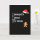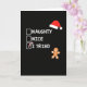 Wish someone a Happy Holiday with this festive and heartwarming Christmas card! 🎅🏼🎄🎁 This humorous Christmas card features a playful take on Santa's famous checklist with three options: Naughty, Nice, and I Tried. The "I Tried" option is checked with a cute candy cane, perfectly capturing a relatable feeling for the holidays. Against a black background, the design includes a festive Santa hat and a smiling gingerbread man. This funny greeting card is ideal for friends or family who appreciate a sarcastic or self-deprecating joke about making the nice list. Spread some holiday cheer with this perfect card for those with a good sense of humor! 🌟🎉