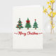This lovely picture shows the Christmas spirit in a classy yet fun way. Three different green trees are the main focus, placed neatly on a soft, slightly textured off-white background. Each tree has its own style, with different shapes and decorations painted in a charming watercolor style. On the left, a big tree with lots of red ornaments and a delicate star on top brings a classic holiday feel. The middle tree is tall and slim, with textured branches and a big red bow for an elegant touch. The last tree is simple and modern, topped with a bold red star. Below the trees, the words "Merry Christmas" are written in fancy red cursive, surrounded by decorative details that make it look festive. The whole image has a soft, dreamy look with warm lighting and gentle brush strokes, giving it a cozy, nostalgic feel. This card strikes a great balance between simplicity and beauty, perfect for spreading holiday cheer. 🎅🏼🎄🎁 Share the joy with this beautiful holiday scene!