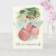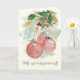 A Victorian style Christmas greeting card with an arrangement of pink ornaments with blue bows under a bouquet of holiday greenery of pine and holly hand painted with watercolor. Lovely Christmas holiday greetings for your wonderful wife. On the inside is another ornament and a shade of off white with text you can edit to fit your needs.