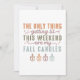 Ce design humoristique et cosy pour l'automne présente la phrase spirituelle "La seule chose qui s'allume ce week-end, ce sont mes bougies d'automne" dans un mélange de polices grasses et élégantes. Le texte est disposé de manière créative avec des tailles et des styles de police variés, ajoutant un intérêt visuel et un ton ludique. La palette de couleurs comprend des teintes chaudes d'automne comme l'orange brûlé, les verts terreux et les bruns doux, qui évoquent la chaleur et le confort de la saison.