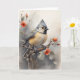 Carte Mésange à tête noire se reposant sur des fleurs ro
