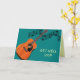 Carte de rétablissement pour guitariste musicien. La carte chrétienne pliée comporte une écriture à l'intérieur en haut et un message personnalisé en bas. L'exemple d'écriture est tiré du Psaume 147:1 et se lit comme suit : « Louez l'Éternel. Qu'il est bon de chanter les louanges de notre Dieu, qu'il est agréable et juste de le louer ! » Modifiez-le facilement pour votre verset préféré. Cartes bleues sarcelle avec une image de guitare acoustique orange et des notes de musique sur le devant, les couleurs se poursuivent à l'intérieur. Une police imprimée moderne complète l'aspect masculin. Les cartes sont disponibles en trois tailles.