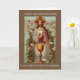 Les cartes de masse sont le moyen parfait pour montrer votre amour en toute occasion, mais surtout quand quelqu'un célèbre sa première sainte communion. C'est une belle image vintage de Jésus tenant l'Eucharistie entourée de chérubins et de fleurs. Un calice doré est au premier plan.