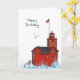 Grand phare rouge avec vague et mouette sur arrière - plan blanc pour anniversaire général. Le texte est modifiable.