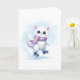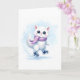 Carte Mignon petit chat blanc d'hiver patinant sur glace