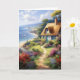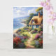 Joli chalet surplombant la mer avec des fleurs illustration style image sur une carte de voeux. Le texte peut être modifié à votre salutation préférée. L'IA a aidé graphisme acheté à des fins commerciales. Oeuvre : CorbeauImprimableDesign