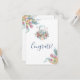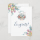 Carte de félicitations. Conçu avec une illustration créée avec des aquarelles. Un mignon lapin maman habillé en bleu assis dans un panier entouré d'oeufs. Papillons et fleurs autour du panier. Bouquets de fleurs tulipes dans les coins.
