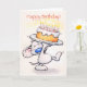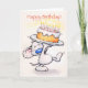 Carte Mignonne souris tenant un gros gâteau, Joyeux anni