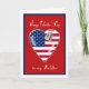 Caractéristiques d'un arrière - plan rouge, bordure bleue et blanche, grand American Flag Heart, être mon chien étiquettes et des mots en écriture argent avec le coeur blanc.