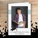 Moderne et simple Bleu Félicitations Carte de Graduation avec un Nom de Diplômé et une Photo. Carte de diplôme avec capuchon de diplôme, texte Félicitations, un nom et une photo du diplômé sur le côté avant - personnalisez avec votre nom et votre photo. Personnalisez le texte à l'intérieur de la carte pour répondre à vos besoins ou l'effacer.