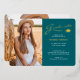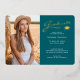 Ce faire-part de graduation à deux faces ou carte de remerciements avec une feuille d'or réelle, présente un texte moderne fusionné avec un script de calligraphie élégant en feuille d'or et blanc sur turquoise. Les photos sont une à l'avant et une à l'arrière, parfaite pour le cadrage. L'arrière - plan peut être facilement customisé à une couleur de votre choix. Pour voir d'autres articles comme celui-ci, visitez mon magasin ici à "www.Zazzle.com/LakeViewCardCo". Merci