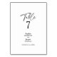 Cette carte de numéro de table simple mariage moderne est parfaite pour votre mariage moderne et élégant. Ce design comprend une calligraphie simple en noir sur un arrière - plan blanc clair neutre pour correspondre à votre mariage traditionnel classique ou à votre mariage boho minimaliste au printemps, en été, en automne ou en hiver. N'hésitez pas à nous contacter pour toute question concernant ce design.