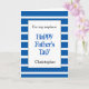 Ceci est une carte de Fête des Pères bleue rayée pour neveu, qui peut être personnalisée sur le devant avec son nom. L'intérieur de cette carte moderne de Bonne Fête des Pères comporte un message doux, que vous pouvez facilement personnaliser si vous le souhaitez. Le dos présente le design rayé avec un espace pour que vous puissiez personnaliser avec l'année. Cela ferait un excellent souvenir pour lui.