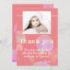 Carte de remerciement photo moderne et mignonne pour enfants. La carte comporte un message de remerciement pour vos invités, le nom de votre enfant et la photo de l'enfant - insérez votre photo dans le modèle. Personnalisez la carte avec votre nom et vous pouvez également modifier le texte de remerciement et écrire le vôtre. Le texte est de couleur blanche tendance et moderne. Le design comporte des bulles douces sur un fond rose. Cette carte est idéale pour une fille ou un garçon.