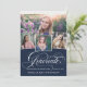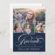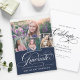 Une invitation moderne de graduation avec le mot "diplômé" sur le devant dans la calligraphie stylisée, plus 4 de vos photos senior préférées. Ajoutez vos propres détails de célébration personnelle à l'arrière. C'est la version bleu marine.