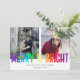 Carte moderne Rainbow Merry & Bright Two Photos Ca