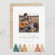 Envoyez vos voeux cette saison avec cette carte de vacances terreuse naturelle avec une rangée d'arbres de noël, une finale de bois naturel et votre photo préférée.