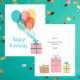 Carte moderne simple colorée Joyeuse Anniversaire Plat Card Une carte d'anniversaire colorée et fantaisiste. Arrière - plan blanc avec script noir minimaliste.