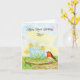 This spring-themed birthday card features a daffodil-inspired birthday cake, the flower of March, with a robin perched on a wooden cake stand, creating a cheerful and meaningful design for a mom's birthday.