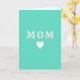 This card shows a calm teal background with the word “MOM” centered in bright white. The letters have a lightly textured, hand-drawn look, so they feel caring and close rather than formal. Just below the word is a simple white heart, placed like a small sign of love that finishes the message. The strong contrast between the white and teal makes the design easy to read and soothing to look at. There aren’t any extra pictures or clutter, which keeps the focus on your relationship and what you want to say. Giving this card feels meaningful because it says “I see you, and I love you” in a quiet, steady way ❤️. It’s a sweet choice for someone who appreciates simple honesty and warm appreciation 🥰.