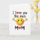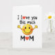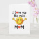 This card shows a yellow, human-like emoji centered on a white background, smiling wide with rosy cheeks and arms stretched out as if going in for a big hug 🥰. Above the character, the text says “I love you this much” in a casual, handwritten-style black lettering. A small red heart replaces the “o” in “love,” adding a sweet touch right in the middle of the line ❤️. Below the emoji, the word “MOM” appears in the same black lettering, with another red heart placed between the two M’s. The simple white space keeps your attention on the bright yellow face, the open-armed pose, and the two red hearts. It feels meaningful because the picture and words together say, “I care about you a lot,” in a clear, easy way. It’s a warm choice for showing love and appreciation, and it makes sharing Valentine’s Day sentiments feel natural.