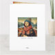 Une carte de vœux pliée et ludique mettant en vedette la Joconde emmitouflée dans un bonnet et une écharpe confortables, souriant à travers une scène enneigée de décembre avec un simple message « Bonne année 2026 » à l'extérieur. À l'intérieur, le design s'ouvre sur un vœu spirituel de Nouvel An imprimé sur un fond magnifiquement texturé qui imite une vieille toile - donnant à la carte une touche humoristique mais artistique de style muséographique. Parfaite pour envoyer des vœux chaleureux avec une touche de parodie de la Renaissance et de gaieté hivernale.