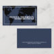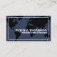 Un carte de visite moderne avec l'image d'une carte noire du monde sur un arrière - plan bleu gris